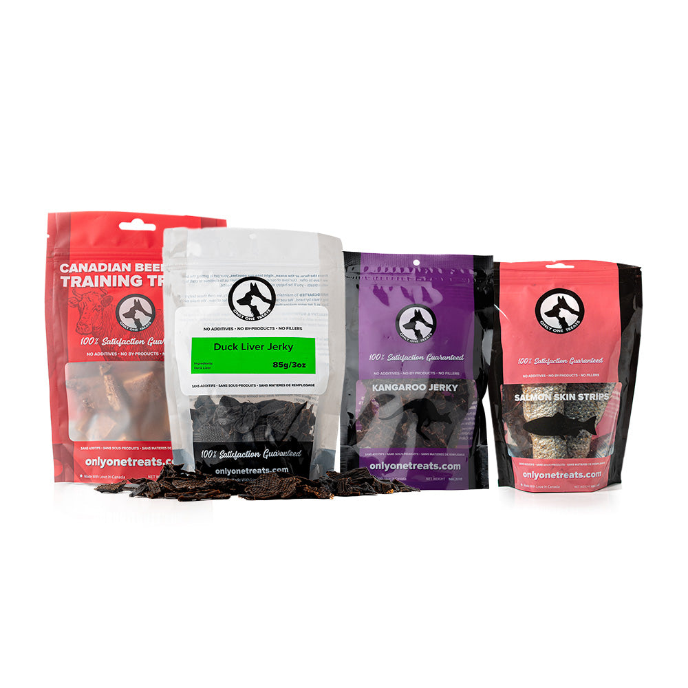 Buying pet treats is on a par with being confronted with the wall of motor oil or feminine hygiene products - it’s bewildering to know what to buy. I chose this because it’s Canadian and it’s made with 1 ingredient and I liked the variety of treats. I use them as rewards for my Boston Terrier. He likes the salmon skin the best - or at least I think he does. He jumps the highest for them. Will definitely buy again.
