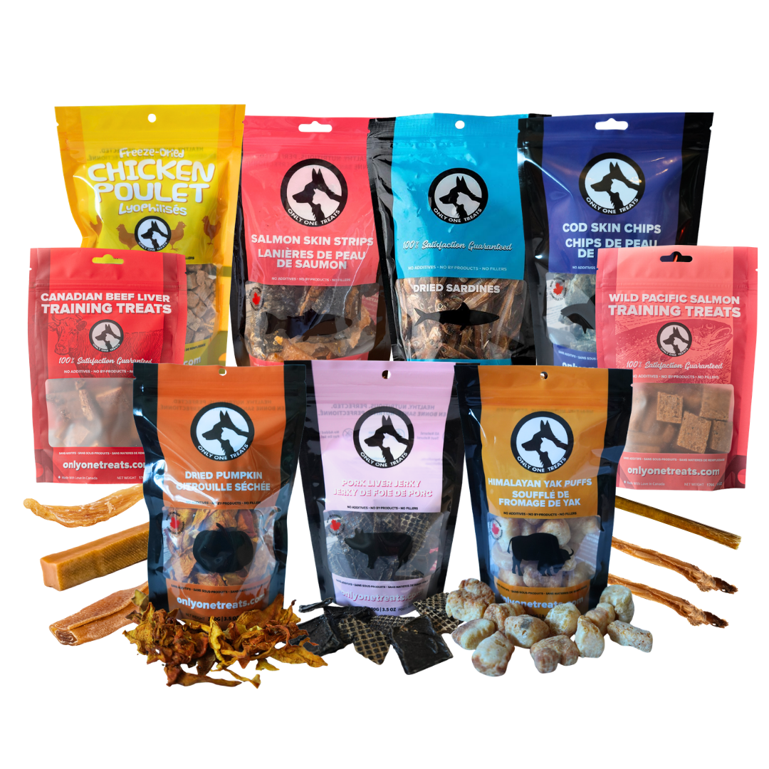 Does everything look good? Having a hard time deciding what you want? Look no further than this dog box, Canada! Thatโs what our Mighty Big Box of dog treats and chews is for. A little bit of everything -- so youโll be sure to find a favourite! Go ahead, they deserve to be spoiled!